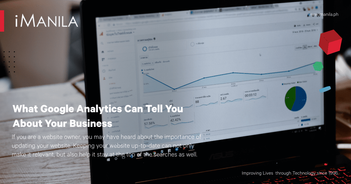 With 25 years of experience in the industry and an IT company at its core, iManila, having been one of the first Internet Service Providers in the Philippines, is committed to providing our clients with innovative online marketing services in the Philippines. We are a full-service business web development and advertising company ready to help you with your web design, web hosting, email hosting, technical support, and digital marketing needs. Learn how we can work together and help build you an effective digital marketing campaign with Google Analytics.